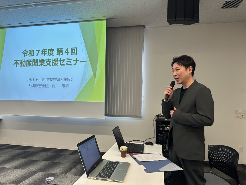 石川県不動産会館で開催し、不動産業の開業に向けて10名が受講されました。